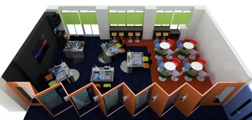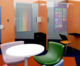 その部屋では、最先端の設備を使ってプレゼンテーションやディスカッションを行ったり、思いついたアイディアを具体的な形にするために3Dプリンタなどを使うことができます。