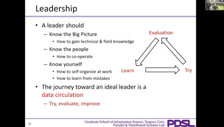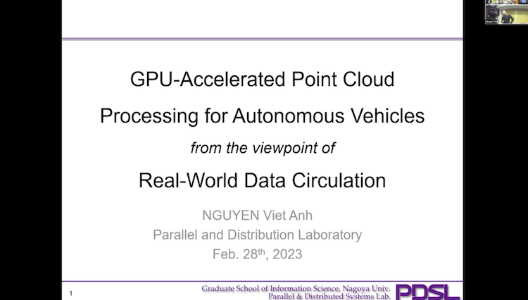 One student of RWDC program completed the program, and a completion review meeting was held. First, Professor Naoki Nishida explained the outline of the completion interview session. Next, the completion interview session was announced by the graduates. In his presentation, he explained his research outline, his activities at RWDC, and the experiences he gained.