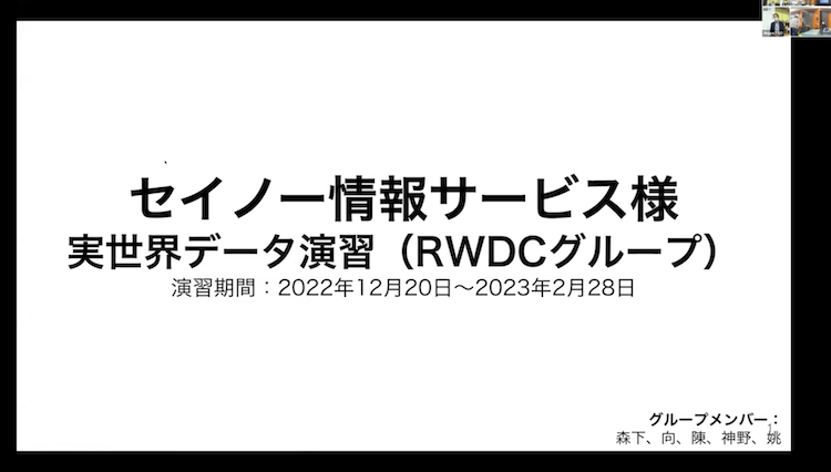 The Plenary Meeting in February will be held at the Leaders Saloon (changed from the Leaders Studio) for the first time in over two and a half years. Students who are unable to attend on-site due to unavoidable reasons can also participate in zoom. Specifically, the RWDC Program Completion Interview Session and the Final Report of the Real World Data Exercise were held.