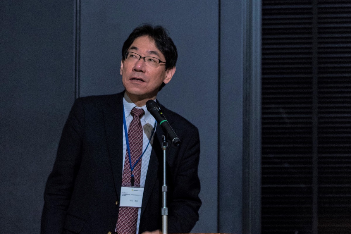プログラムコーディネーターの武田一哉先生が実世界データ循環コンソーシアムの取り組みについて紹介しました。 発表では、これまでリーディングプログラムで実施してきた様々な教育プログラムを紹介するとともに、研究プロジェクトをさらに発展させて新たに始めた、「産学連携プロジェクト組成プログラム」や「産学連携アイデアソン・ハッカソン開催プログラム」の内容について説明しました。 また、履修生同士で始めた研究プロジェクトや履修生が起業したベンチャー企業を通して、学術界や産業界において大きな価値を創造していることを実際の事例とともに紹介しました。