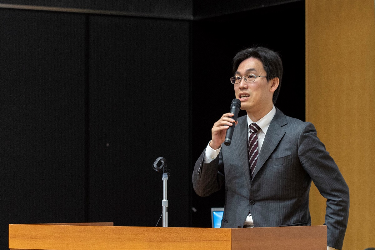 産学連携プロジェクトの二つ目の事例として、ベネッセ教育総合研究所と共同で行った産学連携アイデアソン・ハッカソン開催プログラム及び組成プロジェクトに関する取り組みが紹介されました。 佐藤昭宏様からは今回取り組んだ研究プロジェクト「学習履歴データを用いた自ら学ぶ力の伸ばし方に関する共同研究」の概要、産学連携プロジェクトで期待していること、参加することで得られたことなどについて、企業の立場からご紹介いただきました。 第四期生の大橋さんはデータ解析の概要や得られた知見について説明しました。また、データから事業サービスに有益な知見が得られた理由の一つとして「多様な得意分野を持つ院生チームで多角的にデータを解析できたこと」を挙げており、それがリーディングプログラムの院生チームの強みであると産学連携プロジェクトを振り返っていました。